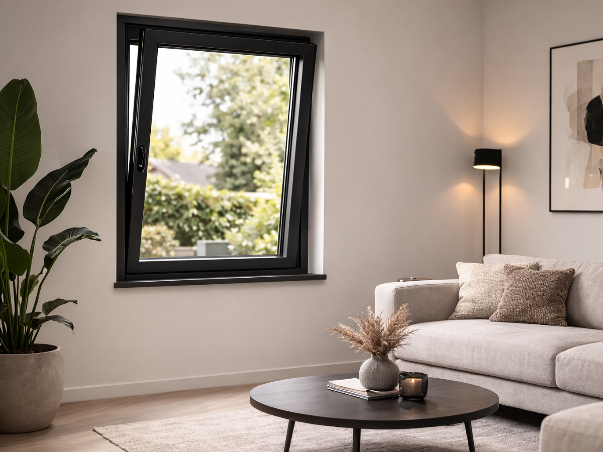 Let op: je stelt het raam samen vanuit het binnenaanzicht.