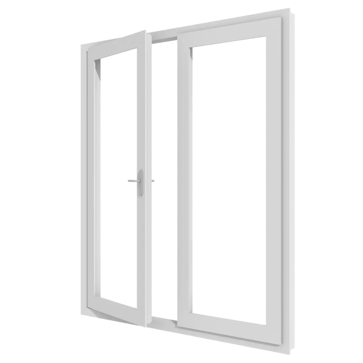 Deze dubbele tuindeuren kunnen samengesteld worden met verschillende pvc-profielen. De tuindeuren draaien naar buiten en kunnen bijvoorbeeld gebruikt worden om een mooie overgang te creëren tussen het huis en de tuin. De deuren worden stolpdeuren genoemd omdat er geen staander tussen de deuren zit.
